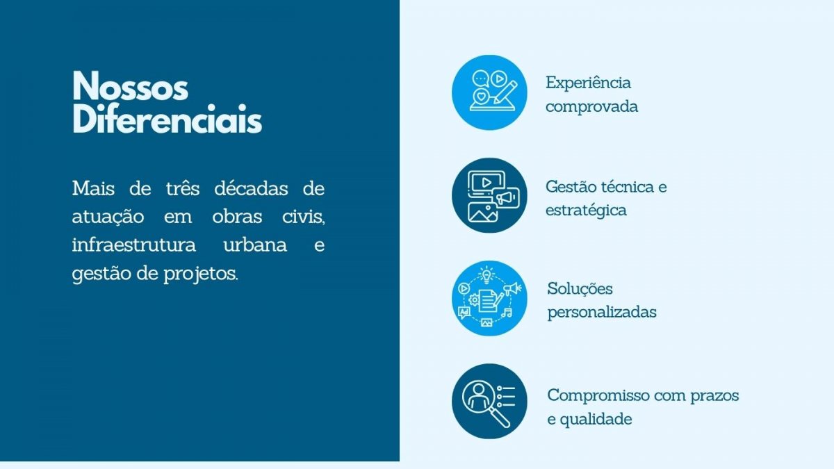 Ao longo de nossa trajetória, consolidamos diferenciais como experiência comprovada, gestão estratégica, soluções personalizadas e foco constante em qualidade e resultados. Cada projeto é conduzido com seriedade, transparência e atenção às necessidades específicas de cada cliente.